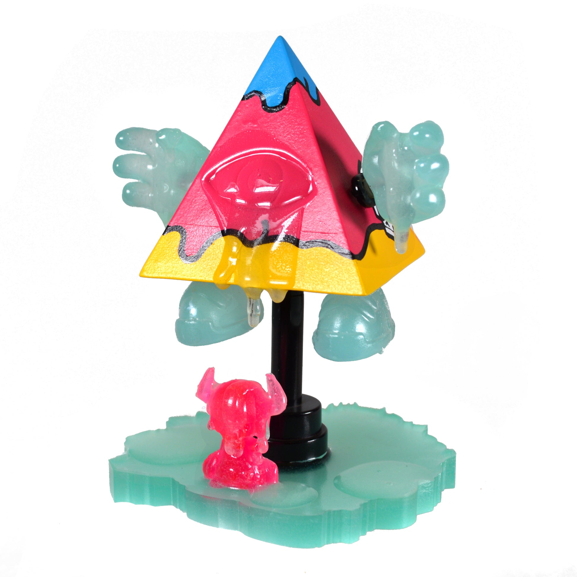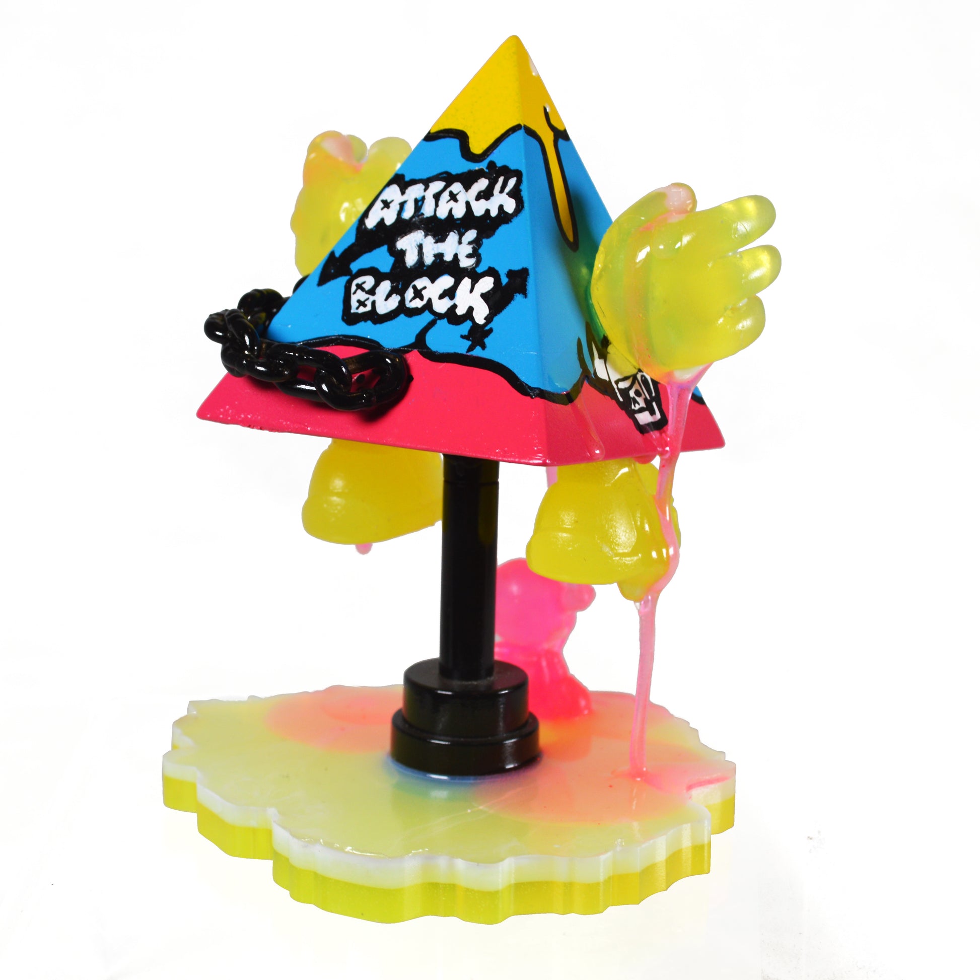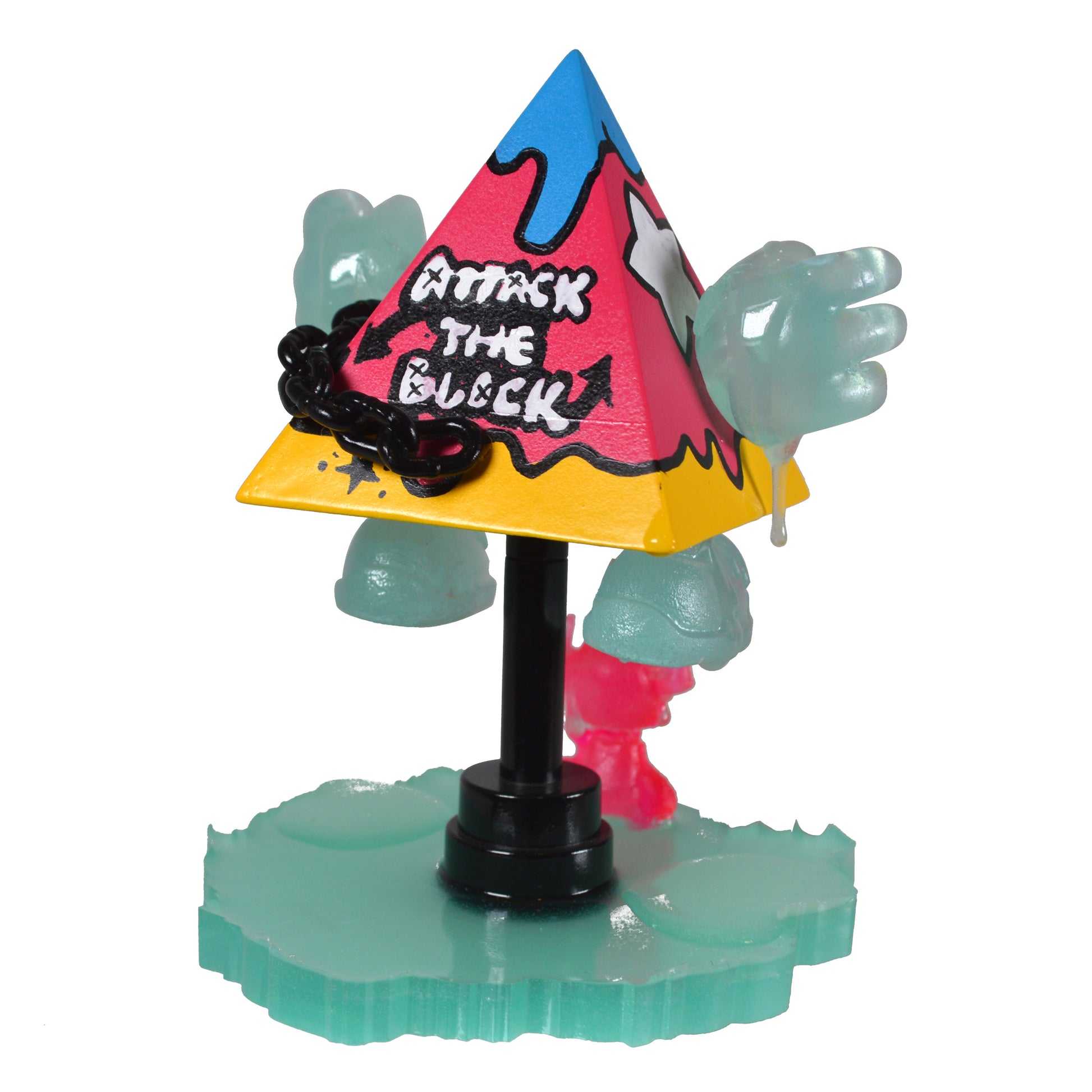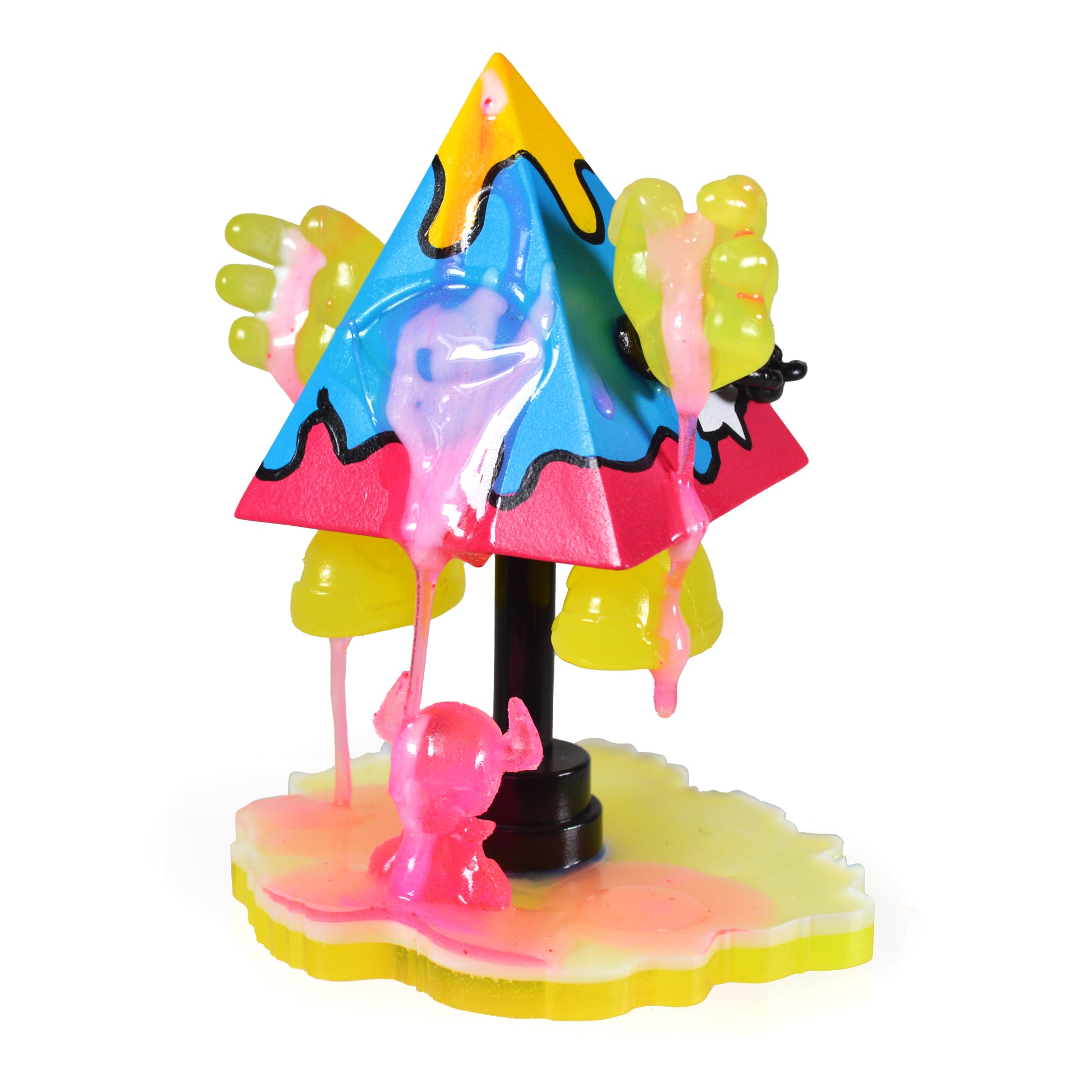 Spray paint and acrylic on vinyl pyramid,